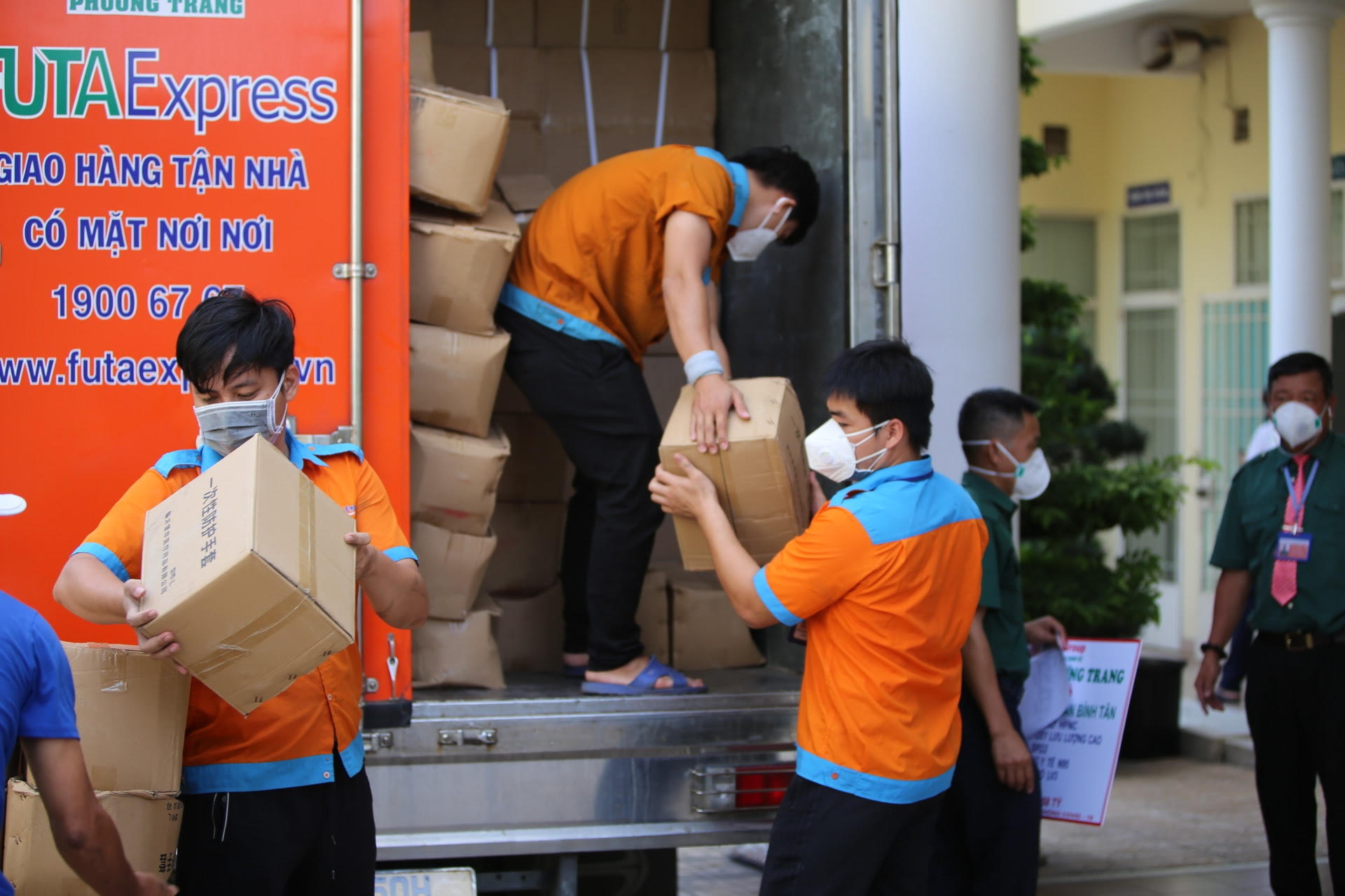 Tại buổi lễ, ông Đào Viết Ánh, Phó tổng giám đốc Công ty CP xe khách Phương Trang - Futa BusLines (đại diện Tập đoàn Phương Trang) đã trao tặng Q.Bình Tân 4 xe tải trang thiết bị y tế, bao gồm 25 máy trợ thở HFNC, 1.800 máy tạo ô xy lưu lượng cao, 1.700 thiết bị đo ô xy trong máu SpO2, 1.200 khẩu trang y tế N95, 2.000 bộ đồ bảo hộ lao động và 100.000 găng tay y tế, tổng trị giá 58 tỉ đồng.